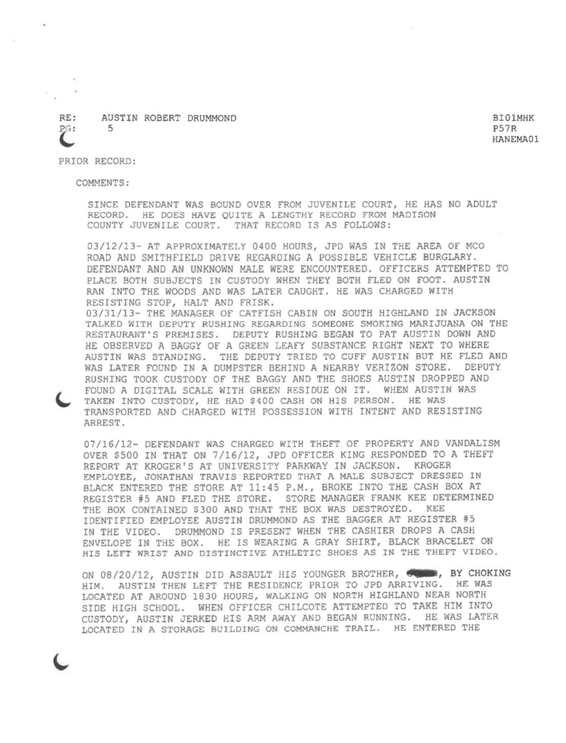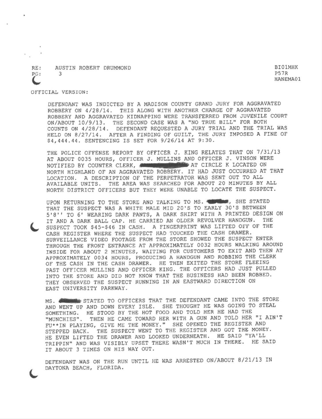- Austin Drammond then-16-year-old robbed a Circle K convenience store in Jackson just after midnight. Drummond pulled out a pistol, pointed it at a store employee and demanded the money in the cash register, according to court documents. He made off with about $45, but investigators matched a fingerprint left on the scene to Drummond, court documents say.