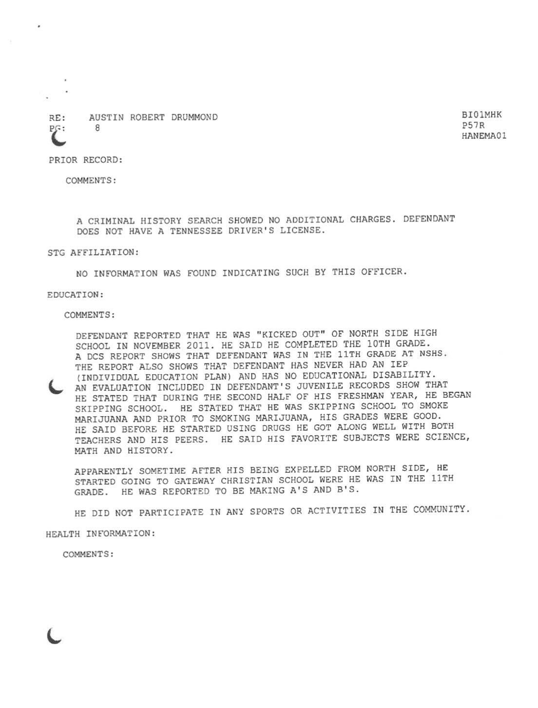 - At the time of the murders, Drummond was out on bond, having faced prior violent offense charges including an attempted murder while in prison.