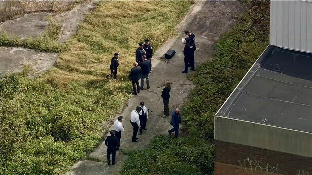 • Investigators search the grounds of Ada H. H. Lewis Middle School (abandoned), near Awbury Arboretum.