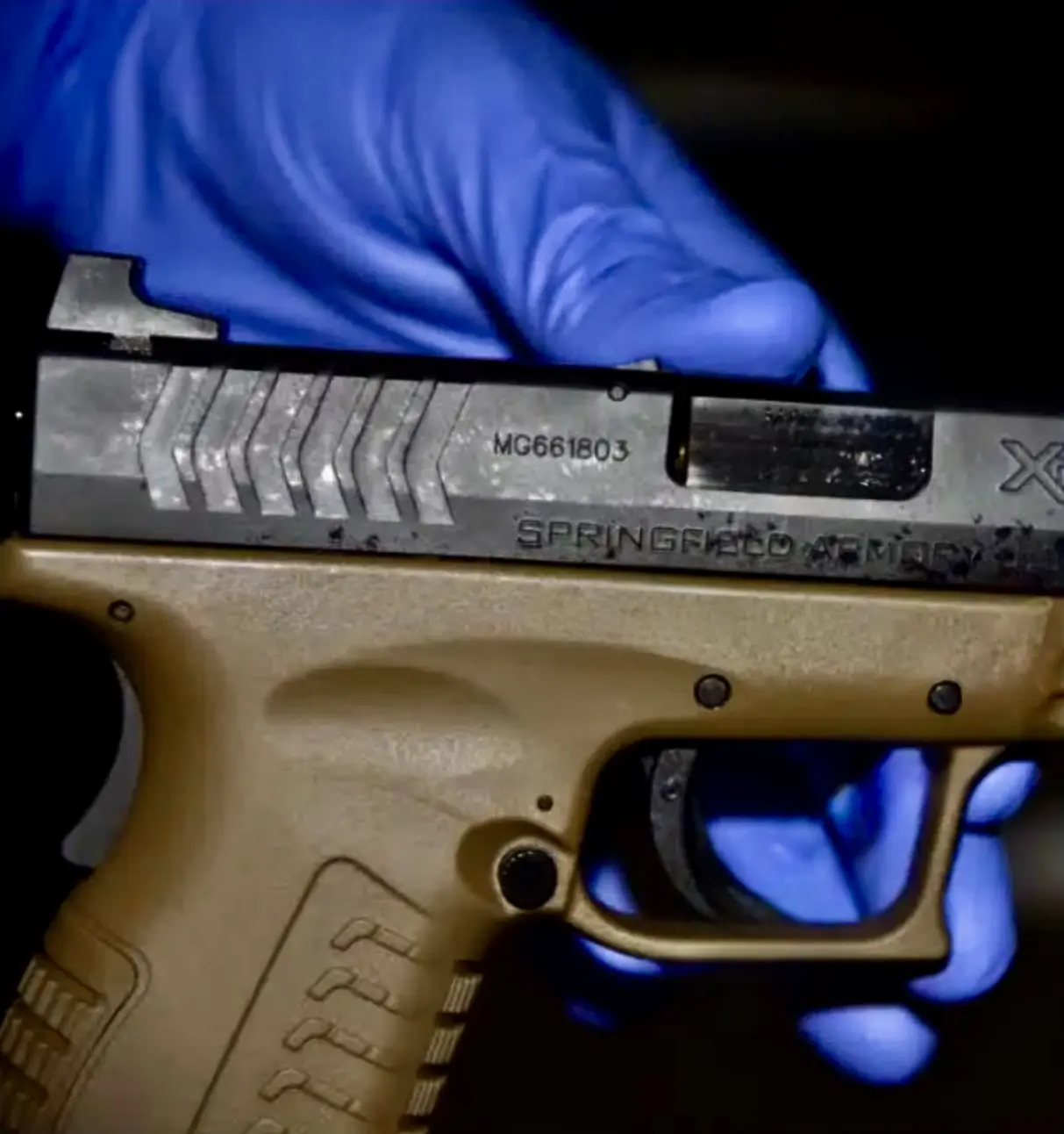 - Test-fired in water tank; patterns and marks matched casings from the scene.