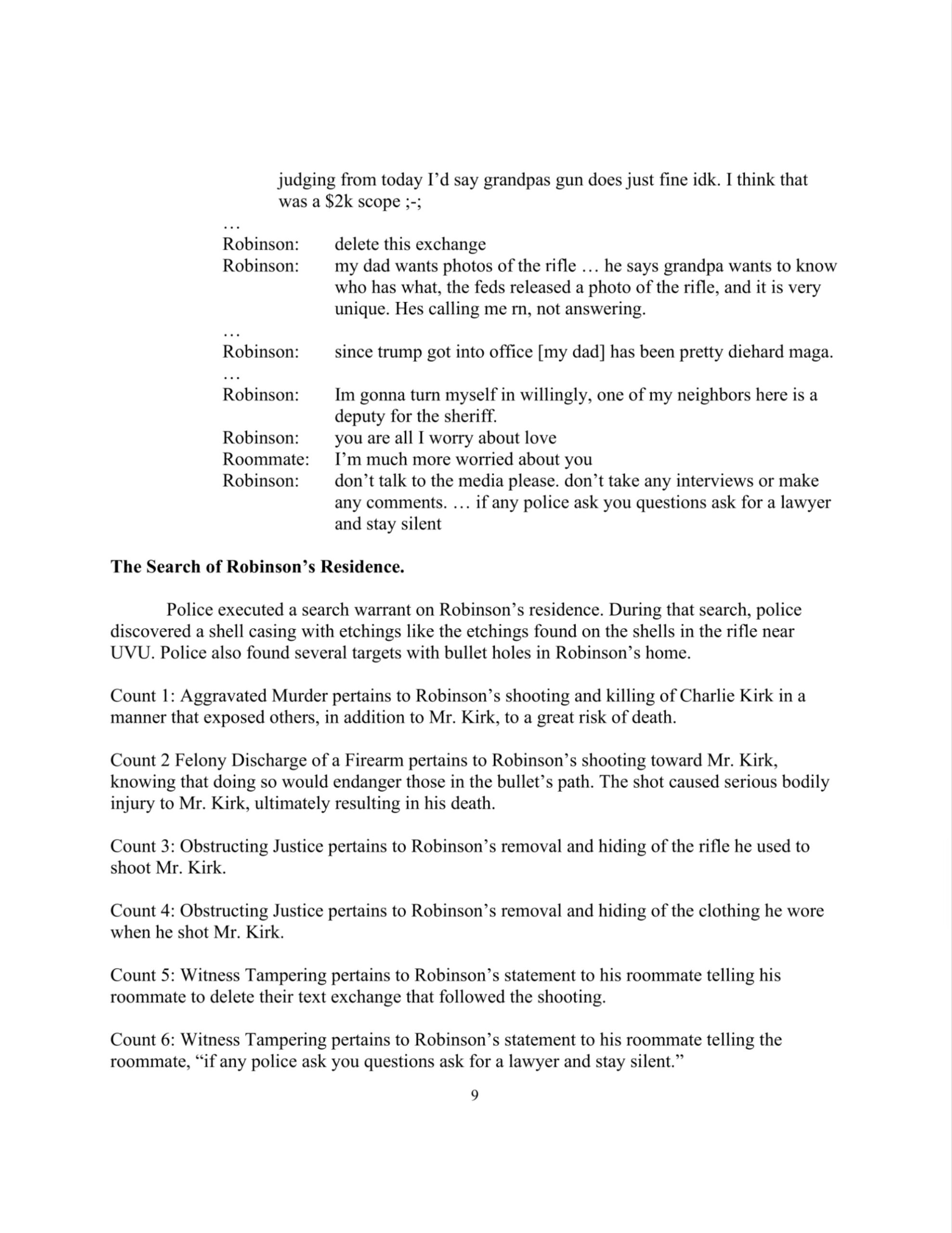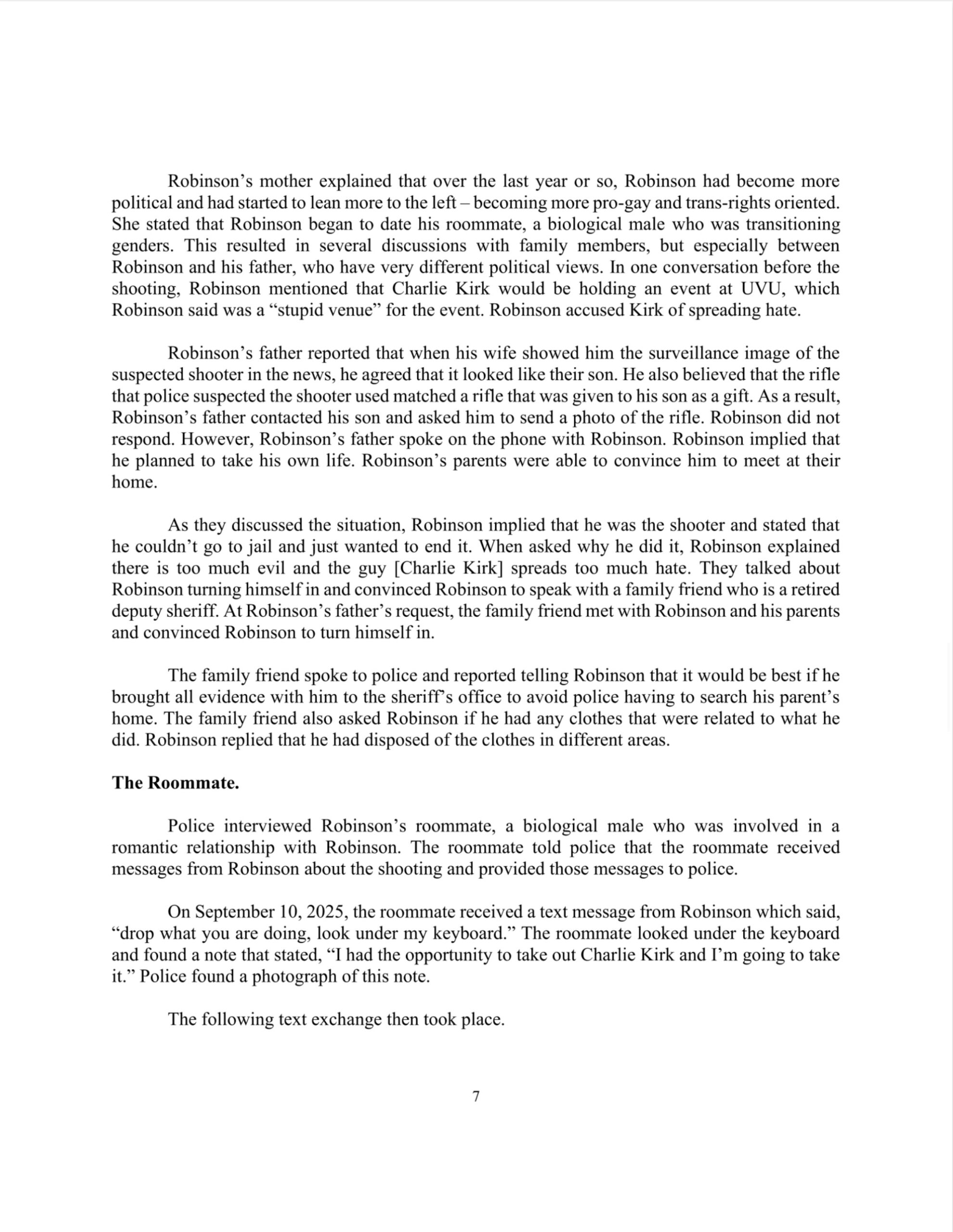 Murder of Charlie Kirk: Affidavit of Probable Cause – Tyler James Robinson